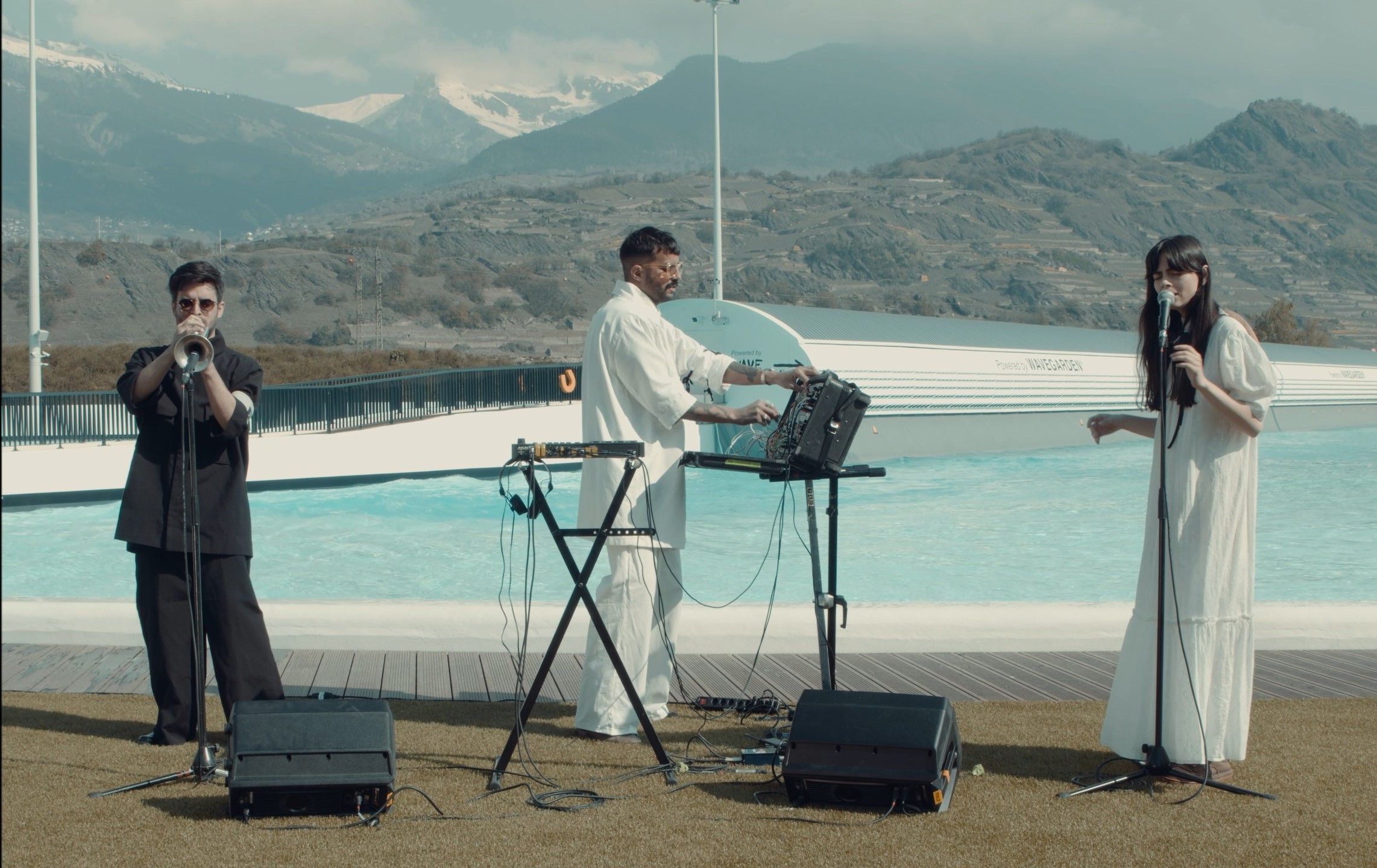 Something special! Here’s a live version of “Take Me To The Moon”, performed at Alaïa Bay, one of the most spectacular surf spot in the world, surrounded by the Swiss Alps! This live version features Guillaume de Kadebostany on the modular synths, Valeria Stoica on the vocal, and Zacharie Ksyk on the trumpet. Enjoy!